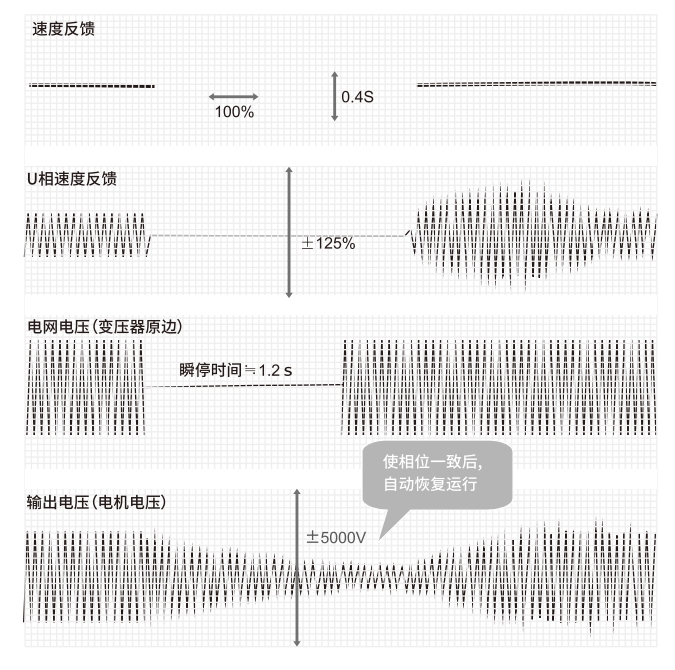 当电网电压恢复时,将电机重新拖动到瞬停前的状态;满足电网电压最长15s的掉电时间。